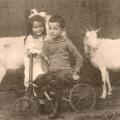 Τα παιδιά του: Στέφανος και Δέσποινα στη Γοτίγγη με χειροκίνητο ποδήλατο έξω από το σπίτι τους.
